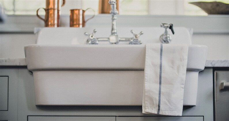 These plain-woven tea towels are the perfect, subtle statement for any kitchen. Inspired by English Cornish ware, they feature a single stripe running the length of the towel.