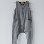 Complete with pockets to store all the treasures they find on their adventures, this sleeveless harem-style playsuit is functional, incredibly soft, and ready for outdoor explorations.
