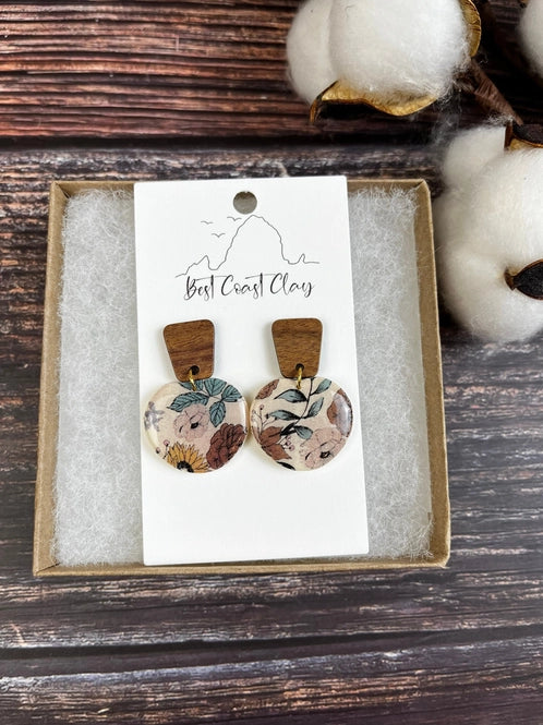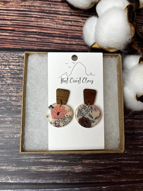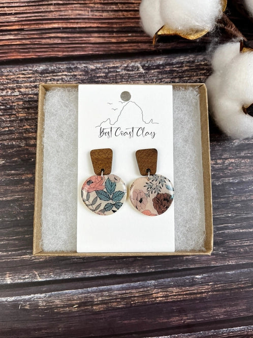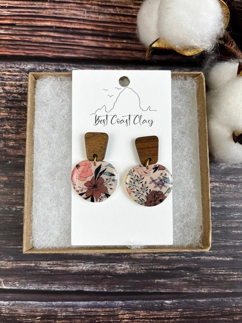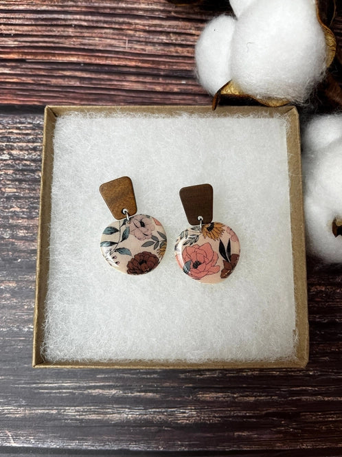 The Jane || Boho Floral Printed Dangle Clay Earrings, Silver