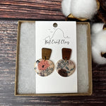 All items are handmade, so slight variations from the pictures may occur. These earrings are made from a slab, so each pair is slightly unique with design placement.