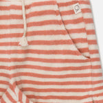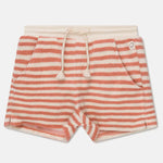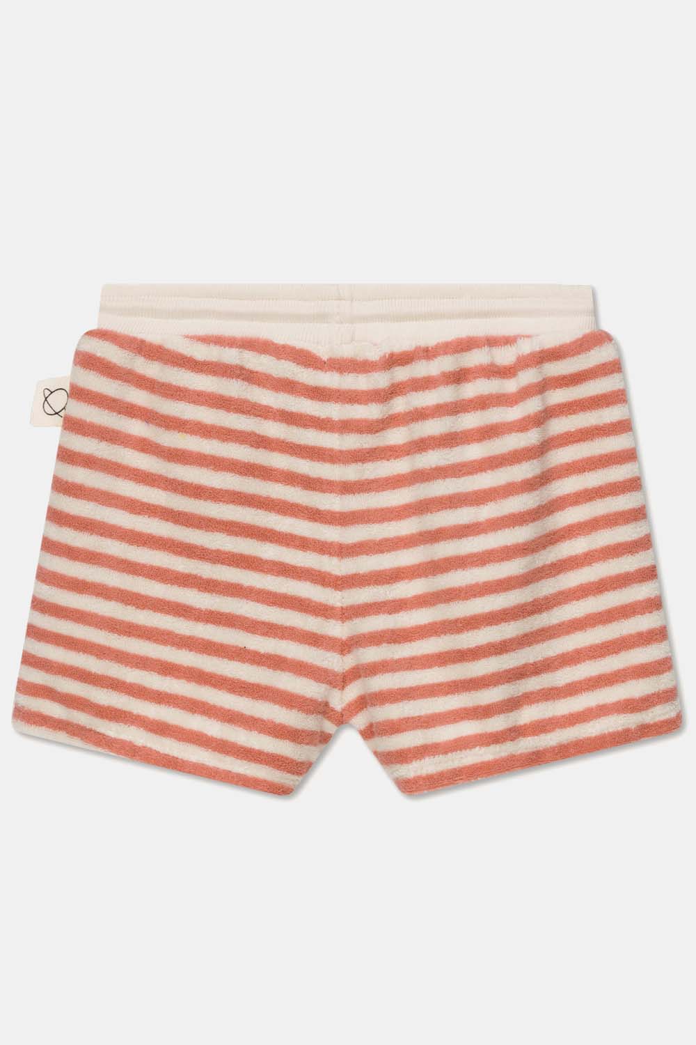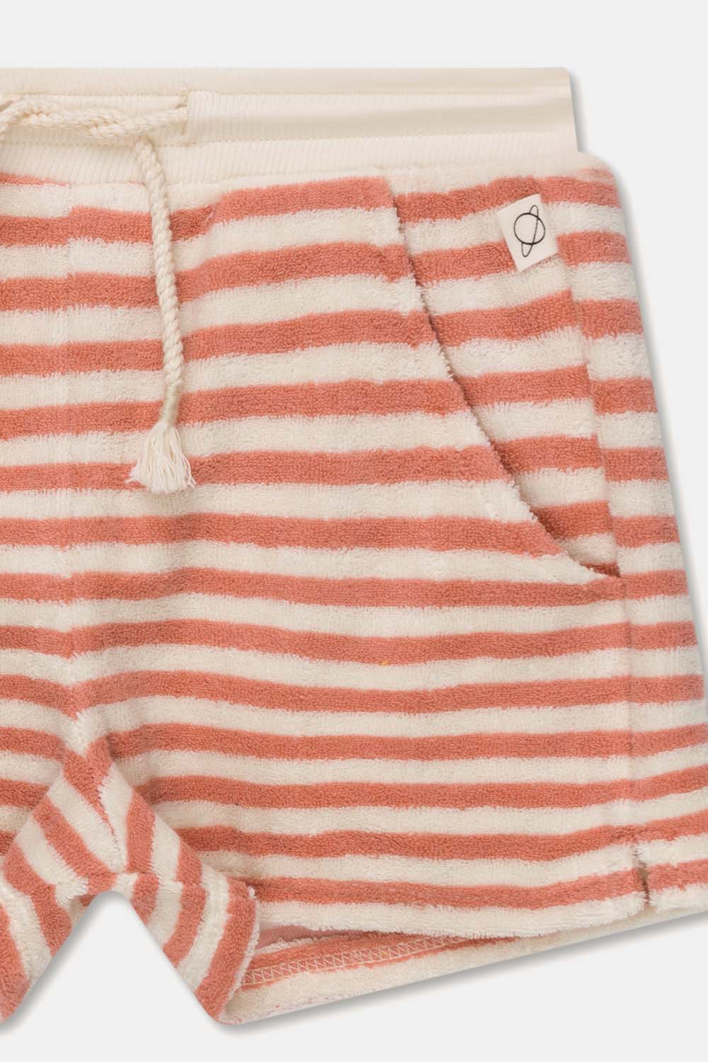 Summery stripes plus soft cotton toweling makes a charming combo on these sweet kids' summer shorts. They feature a drawstring waistband, side pockets, and side slits. These striped toweling shorts are knitted in 80% cotton and 20% recycled polyester, with a fabric that supports the Better Cotton Initiative's mission.