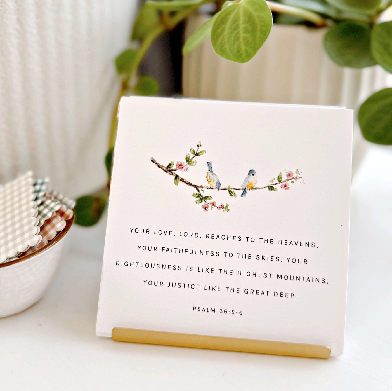 Display them throughout your home as a gentle reminder of God’s enduring love and His call for us to love others. Use them as daily or weekly reflections, commit the verses to memory, or share them with friends for moments of encouragement. Slip one into a note, keep a few by your bedside, tie them to gifts, or display them on your desk or mirror.