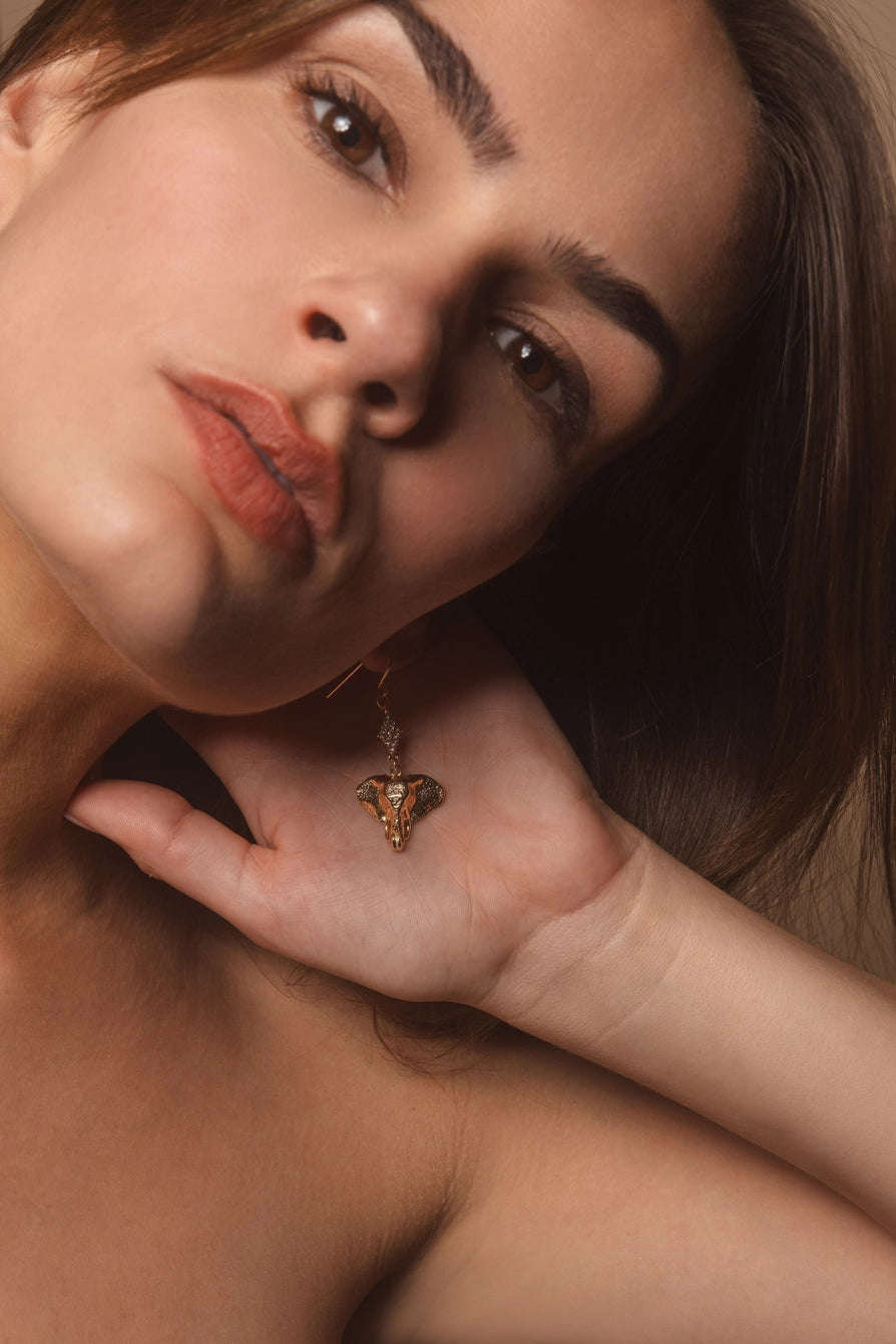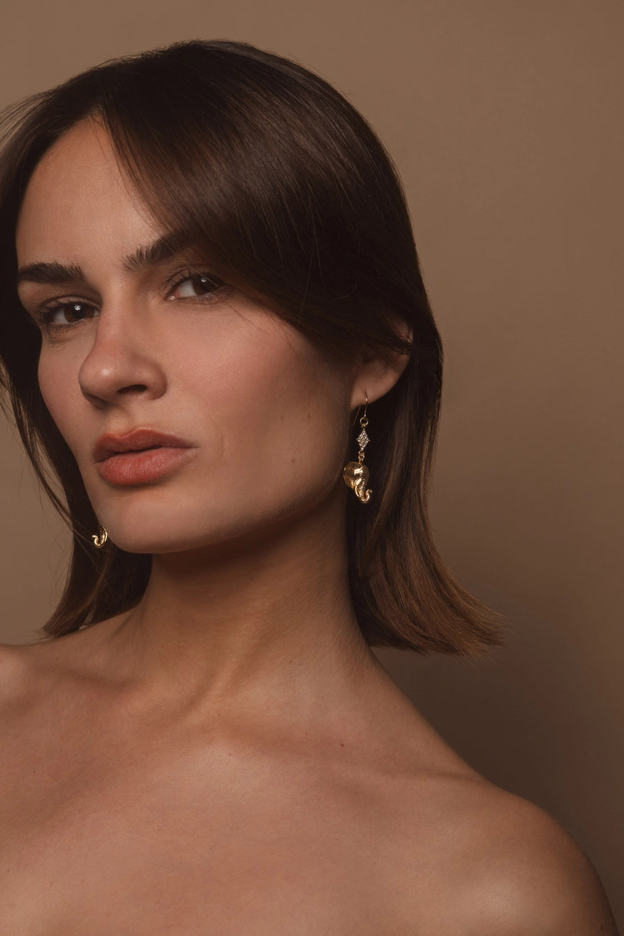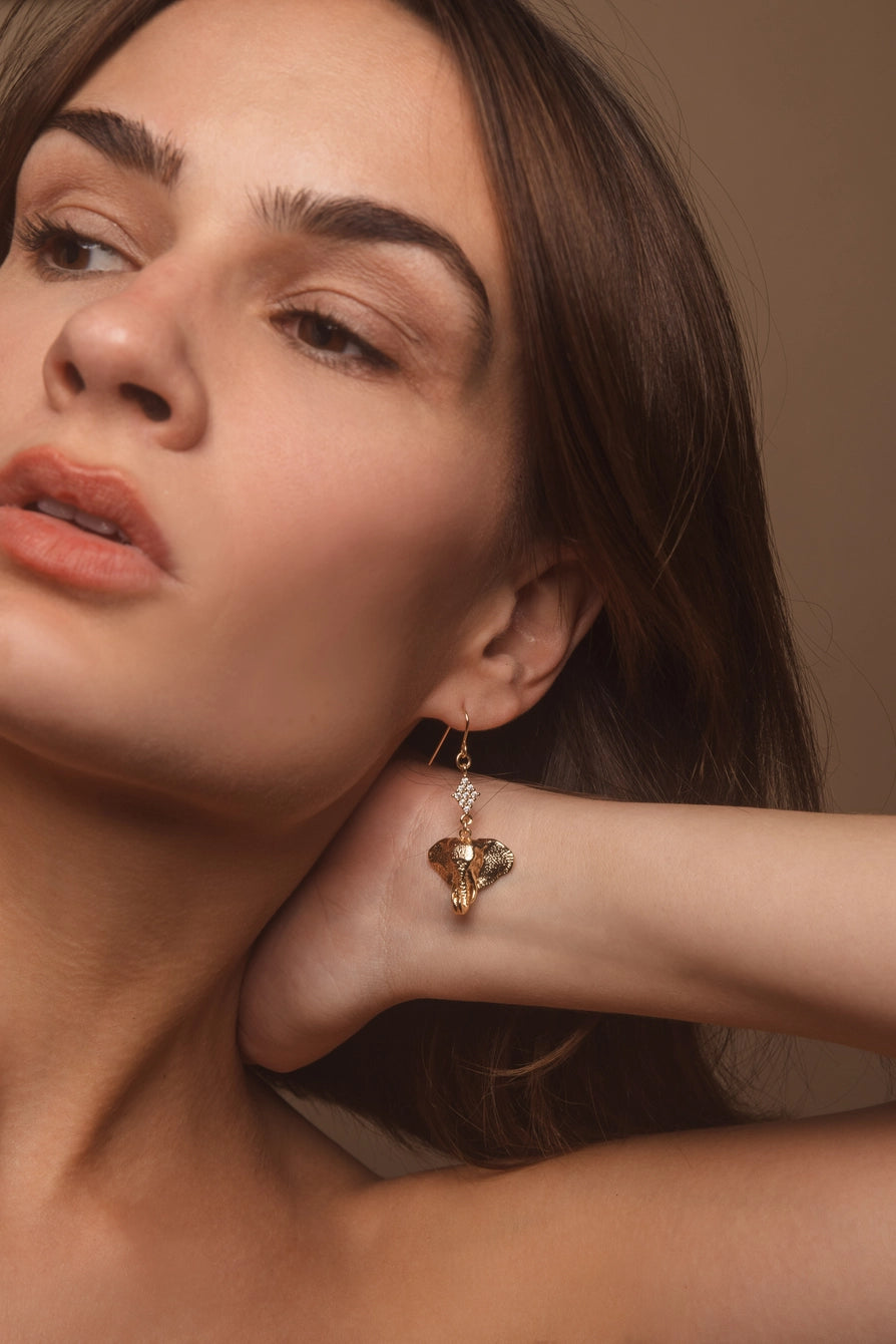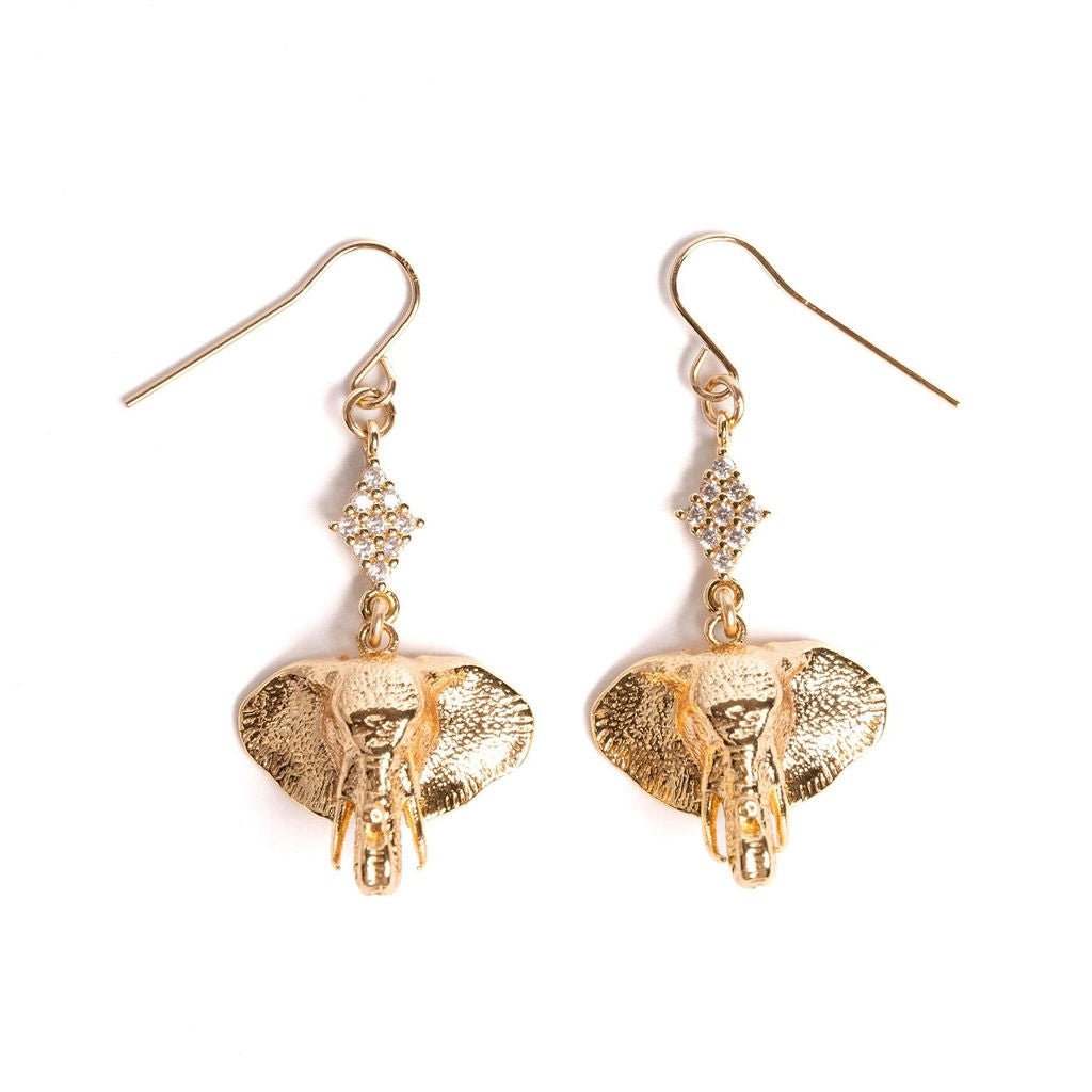 These whimsical earrings feature bold elephant charms, perfect for adding a fun and flirty touch to any outfit. Adorned with sparkling cubic zirconia, these earrings are sure to turn heads.