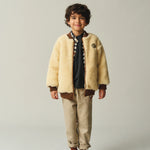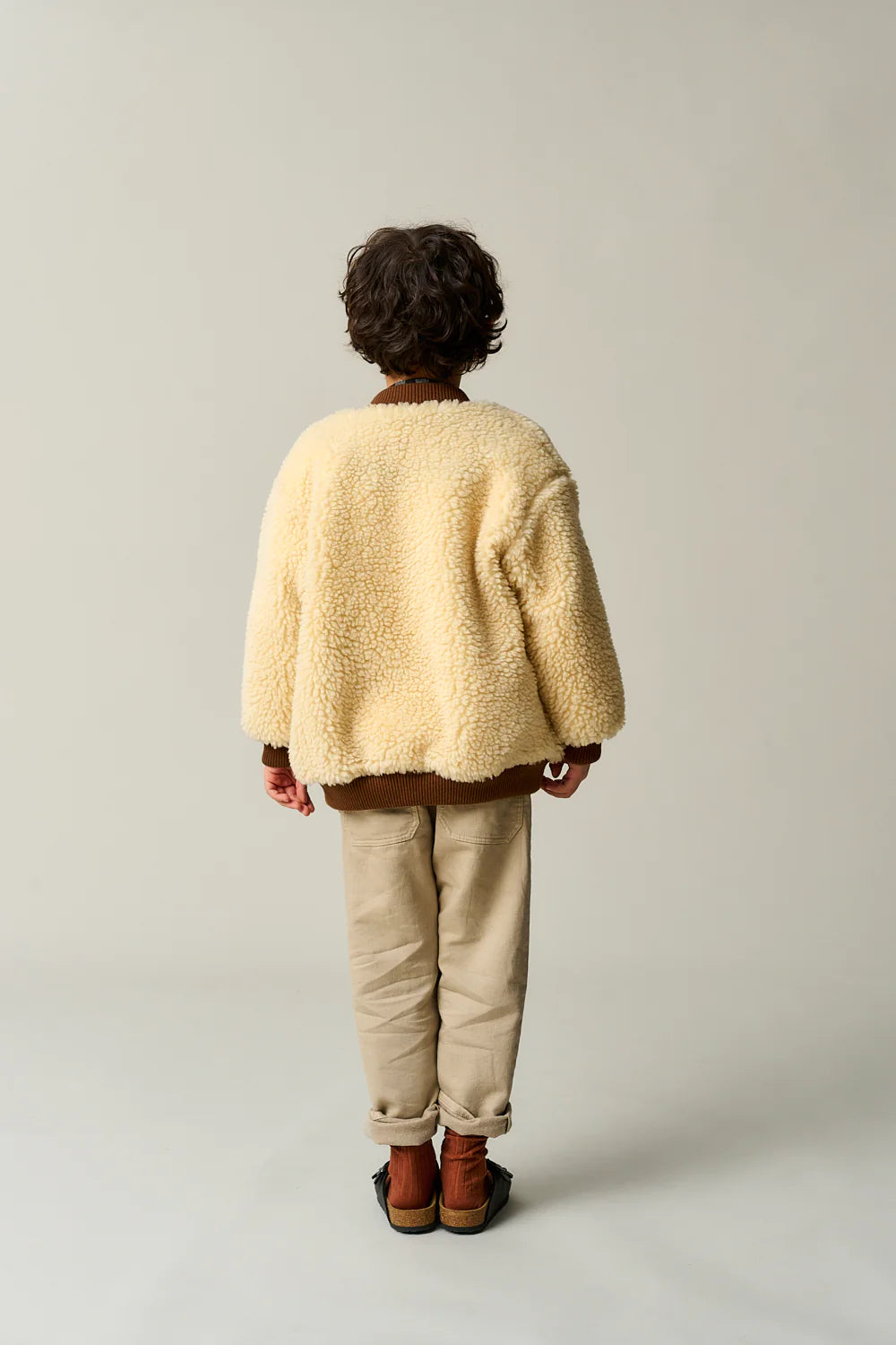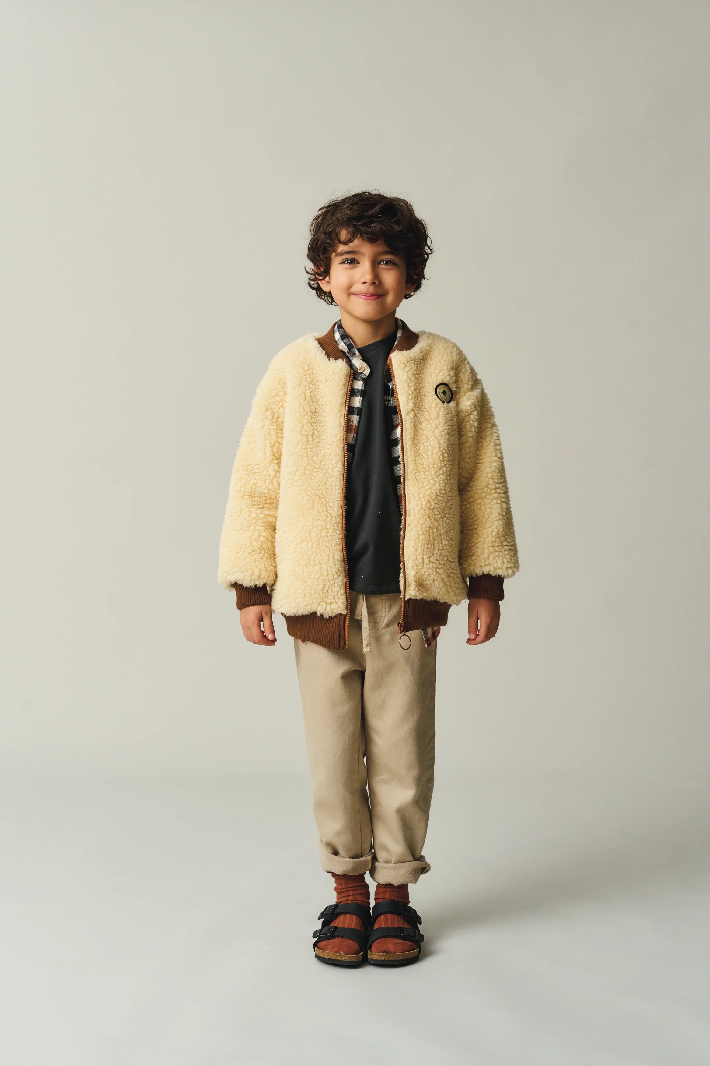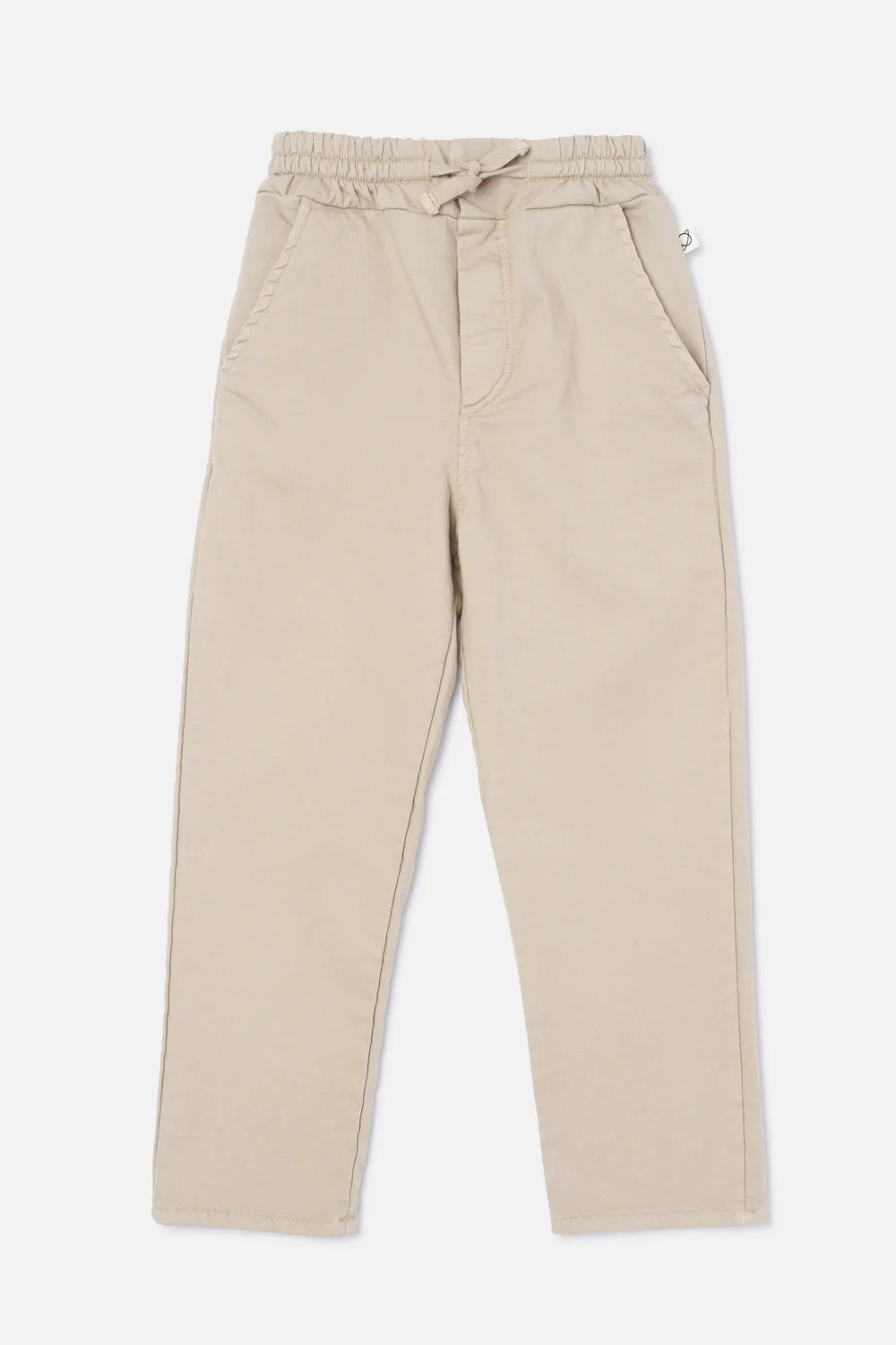 Twill pants in a plush texture with elastic waistband and adjustable drawstring. Pockets at the sides and back. Contrasting striped fabric at the back of the waistband. Elastic and brushed on the inside. 85% cotton, 12% polyester, 3% elasthane. Woven.