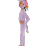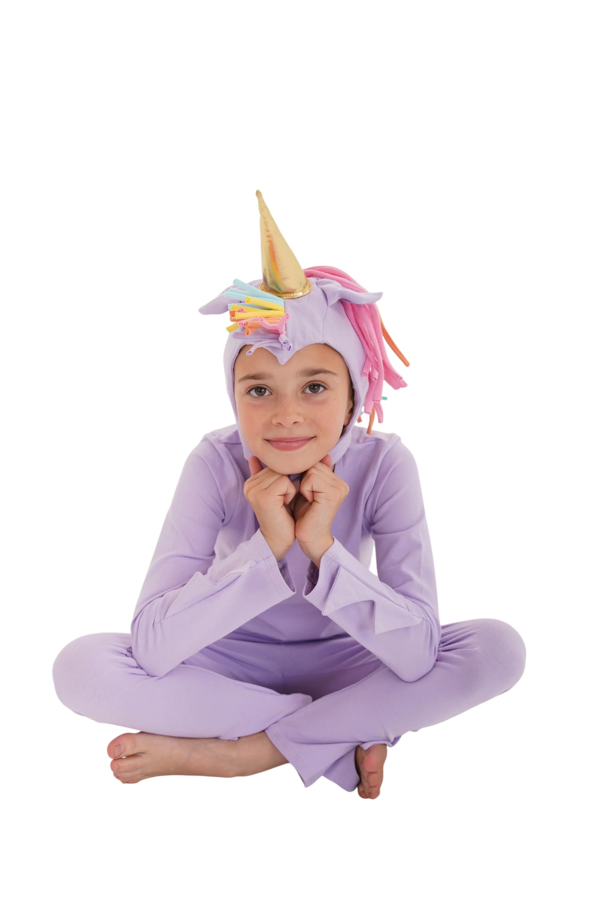 The Lavender Sky Unicorn costume is made for little ones who drift between dream and play. A soft lavender cotton pajama base brings comfort from morning adventures to evening stories, while a golden horn and flowing pastel rainbow mane invite twirls, gallops, and magical transformations.