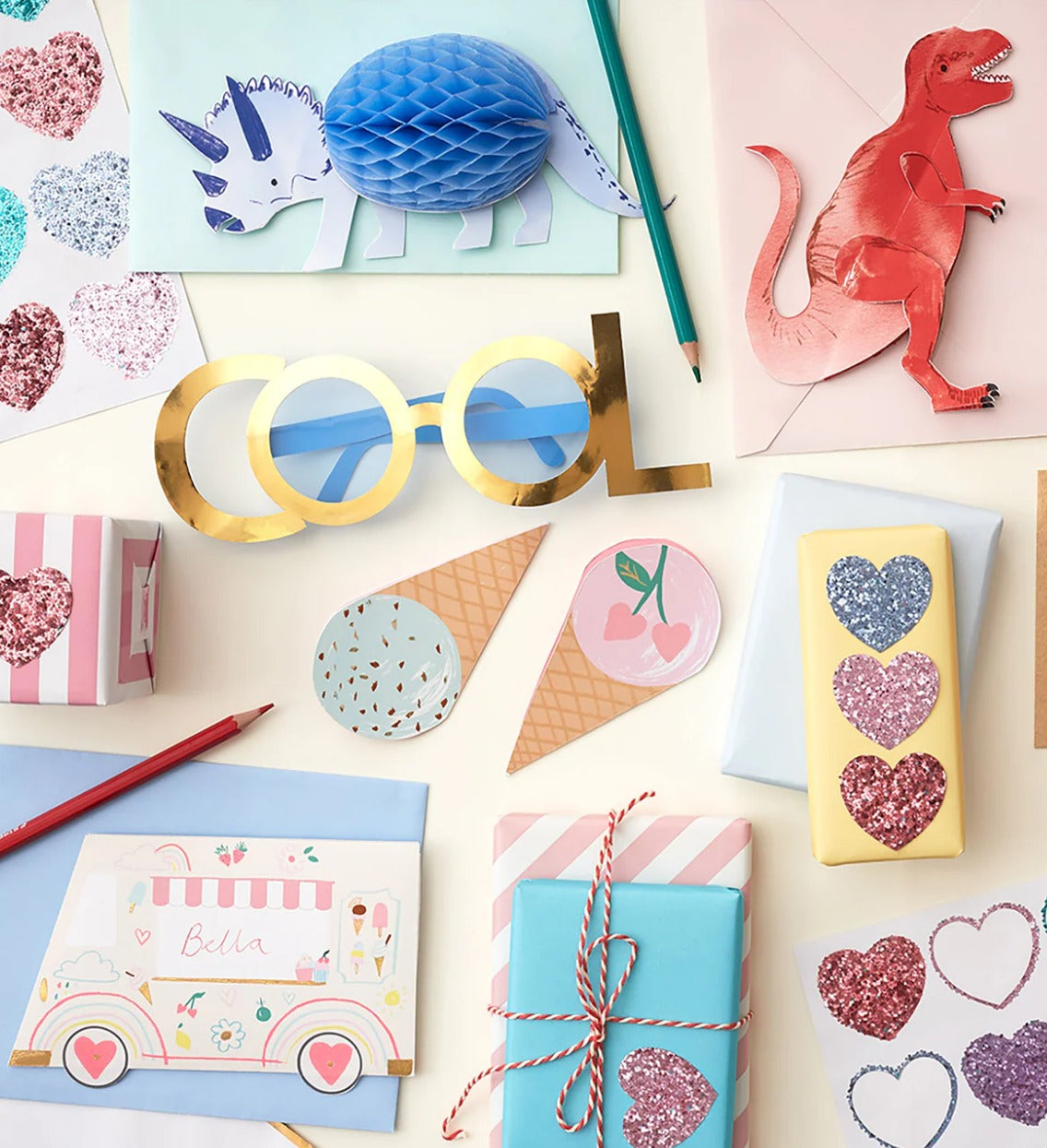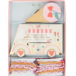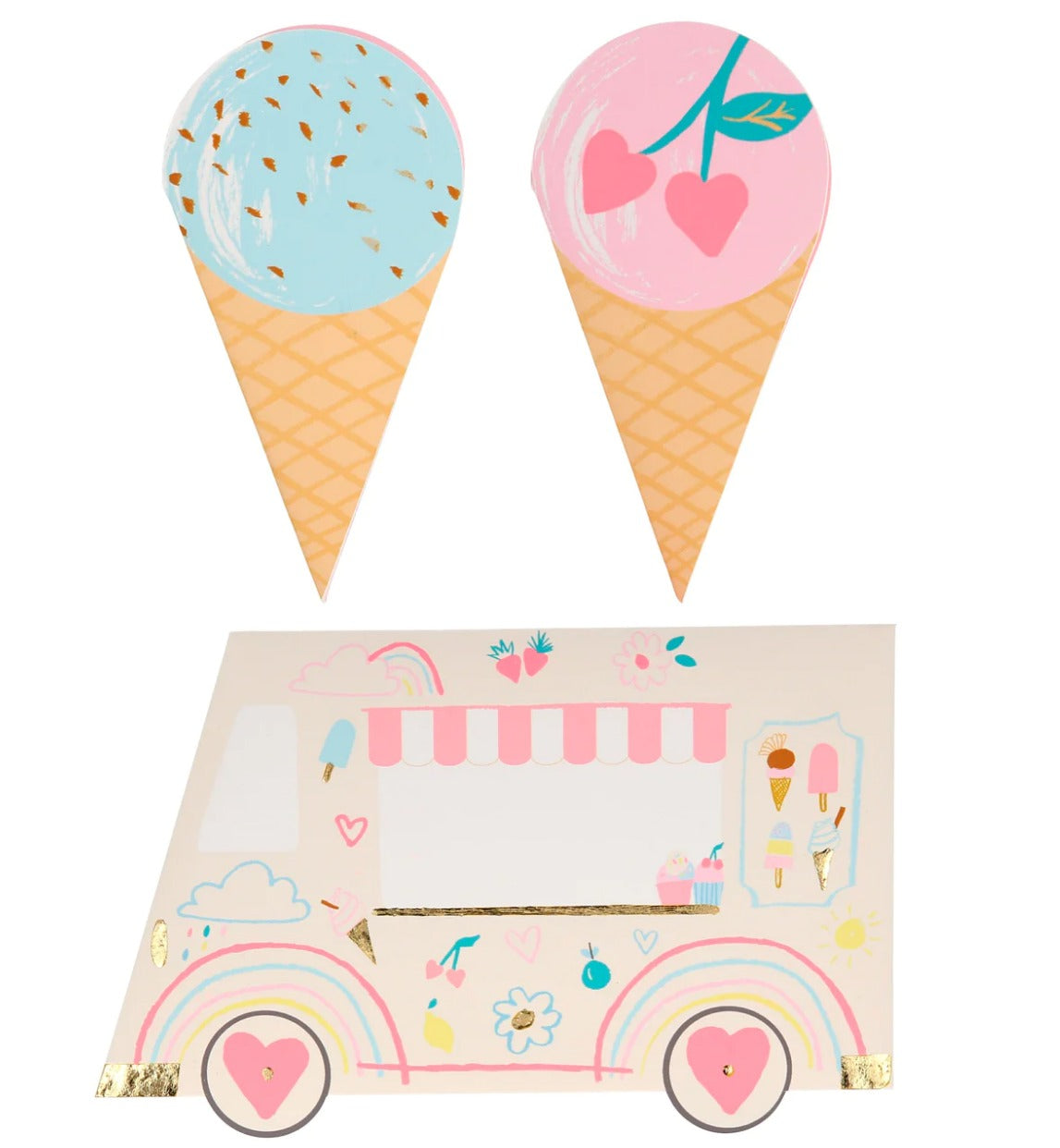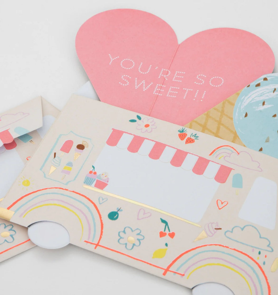 The envelopes are designed as ice cream vans, with shiny gold foil details - a delight to open!