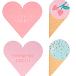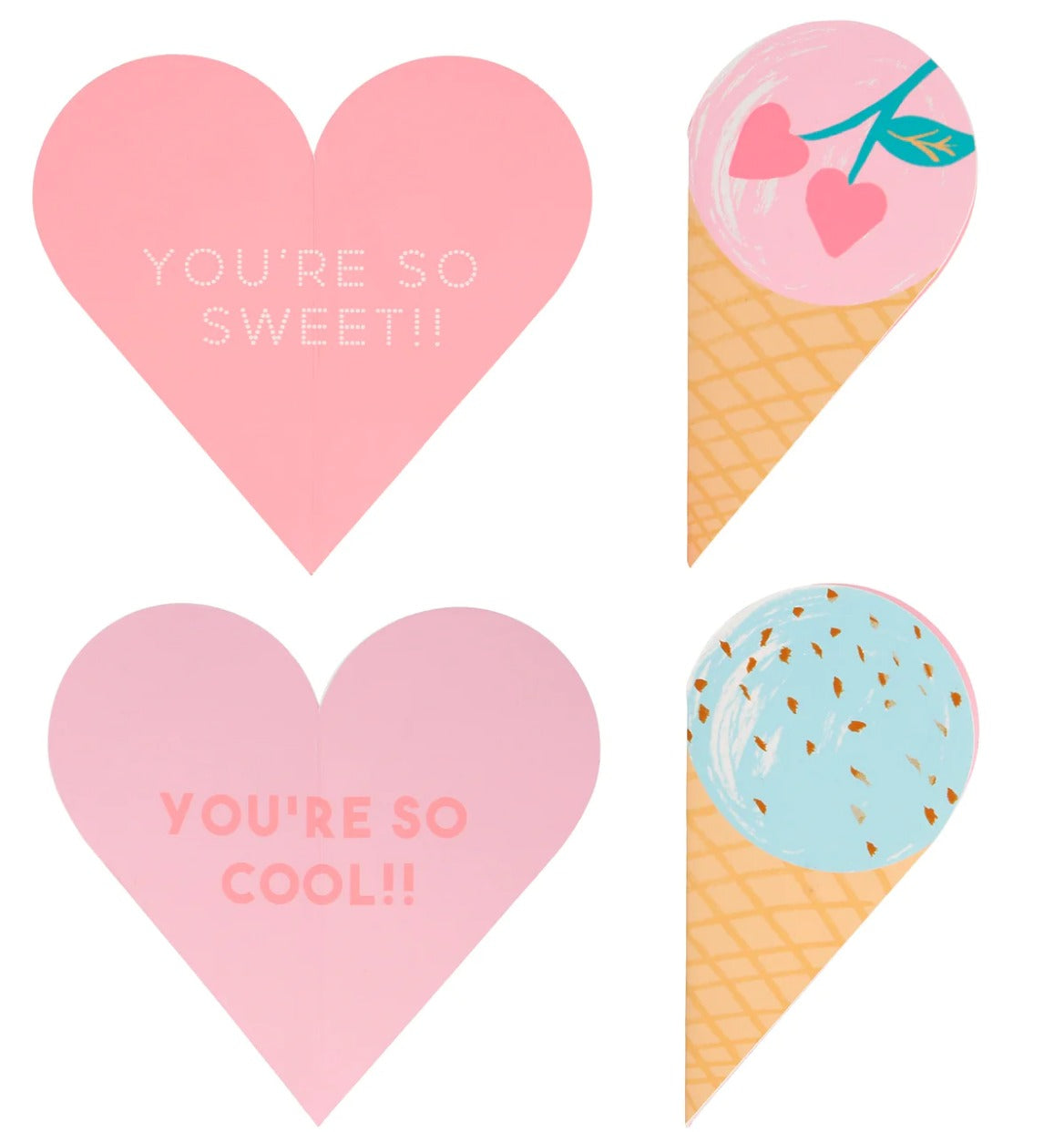 The 2 different designs of cards feature ice creams with love heart cherries, sprinkles and gold foil details.