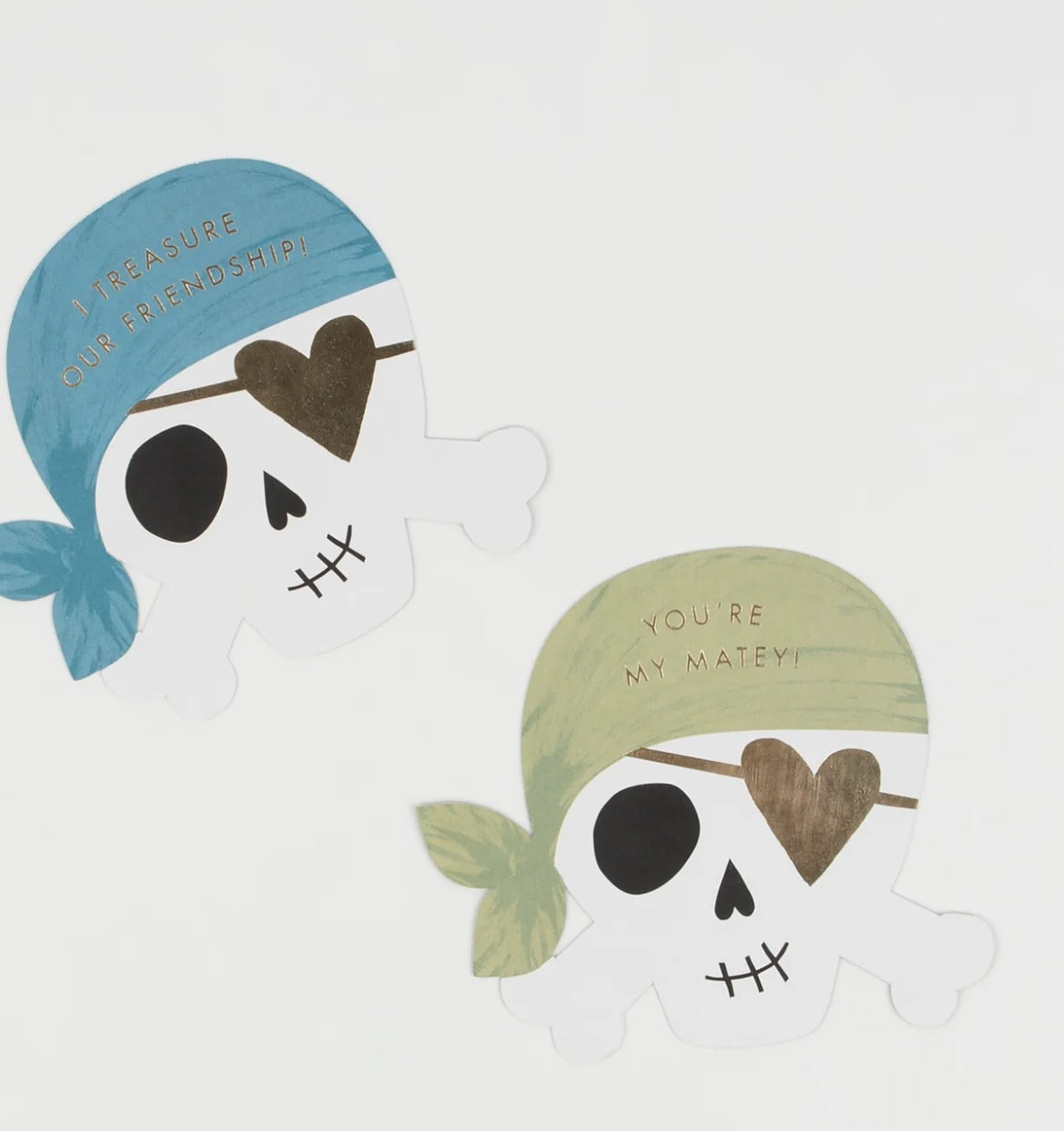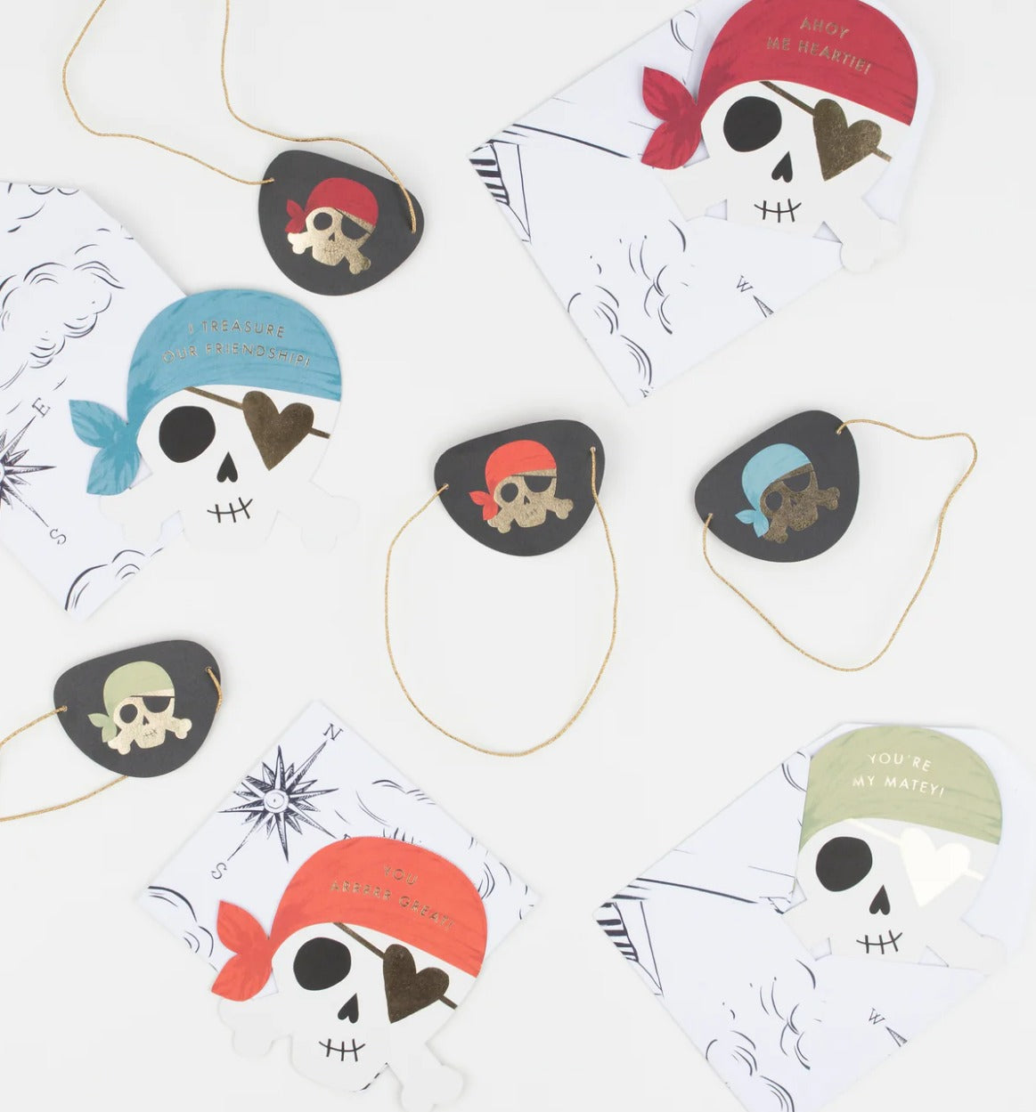Ahoy me Hearties! These pirate Valentine cards are an excellent way to send the love to friends and family. They each come with an eye patch, for lots of nautical dress up fun too.
