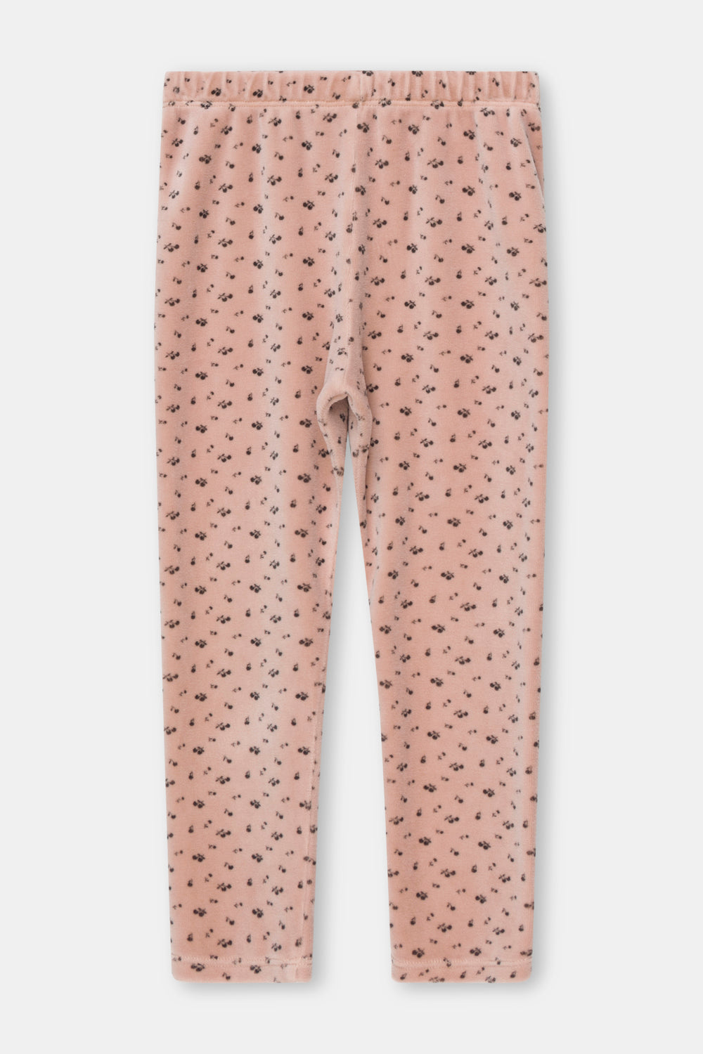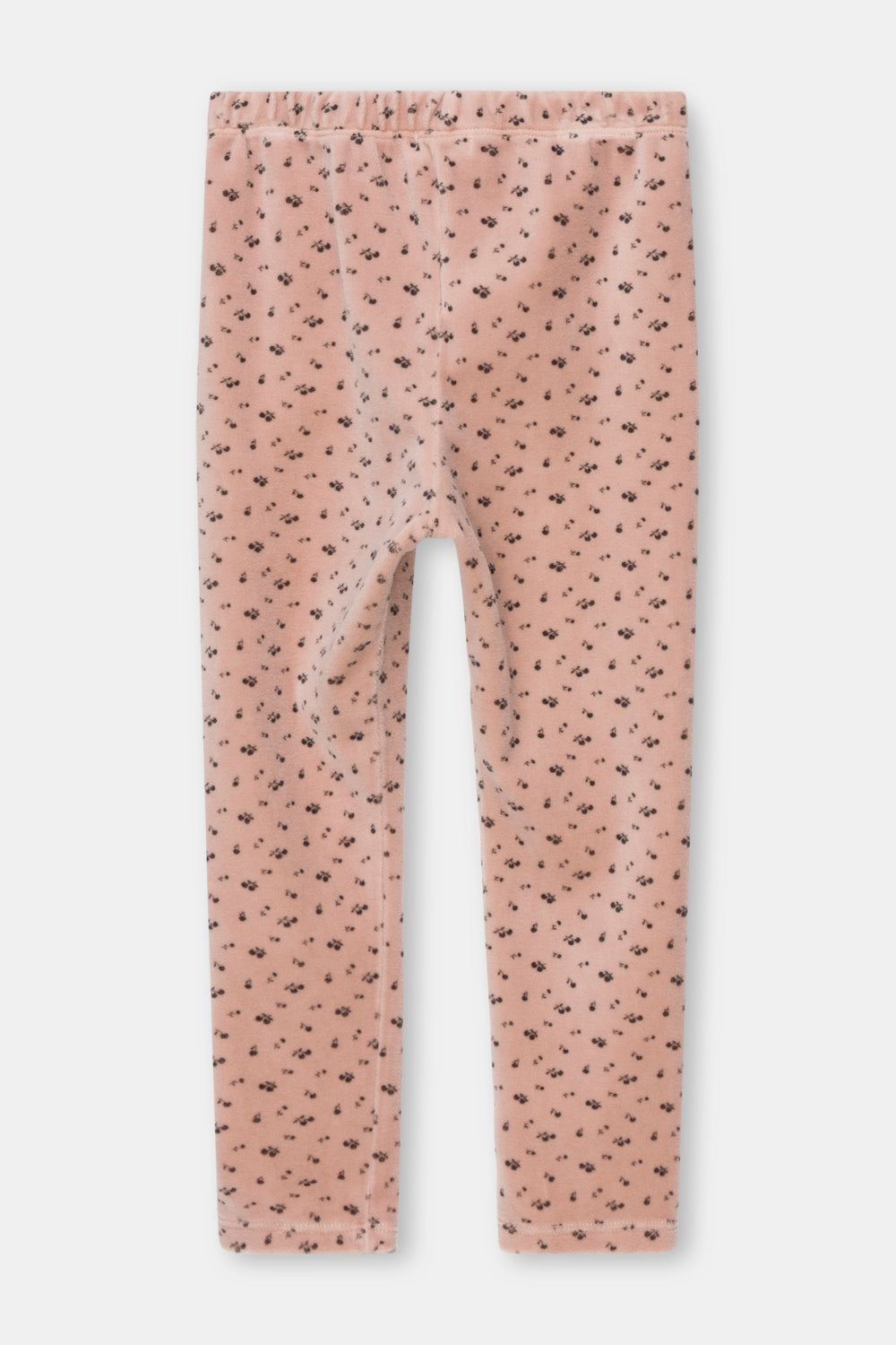Designed in a cherry print in soft pink. These velour leggings have an elastic waistband and are made of 83% cotton, 17% polyamide.