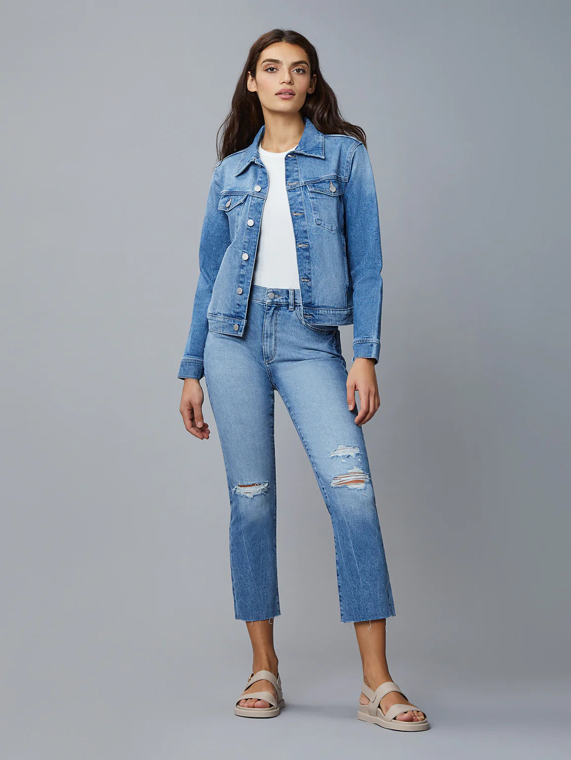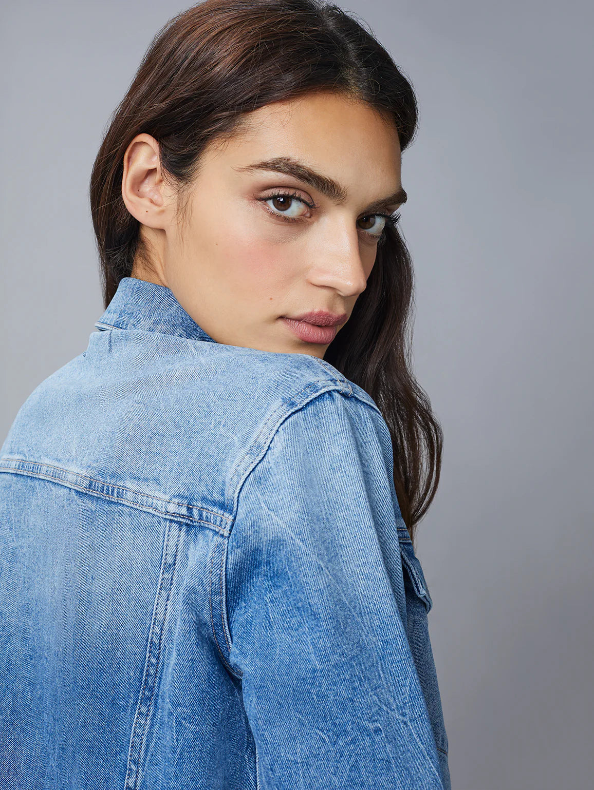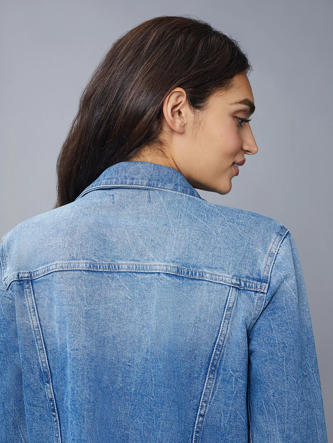 Vika is a classic denim jacket that is straight through the body and falls at the hips.