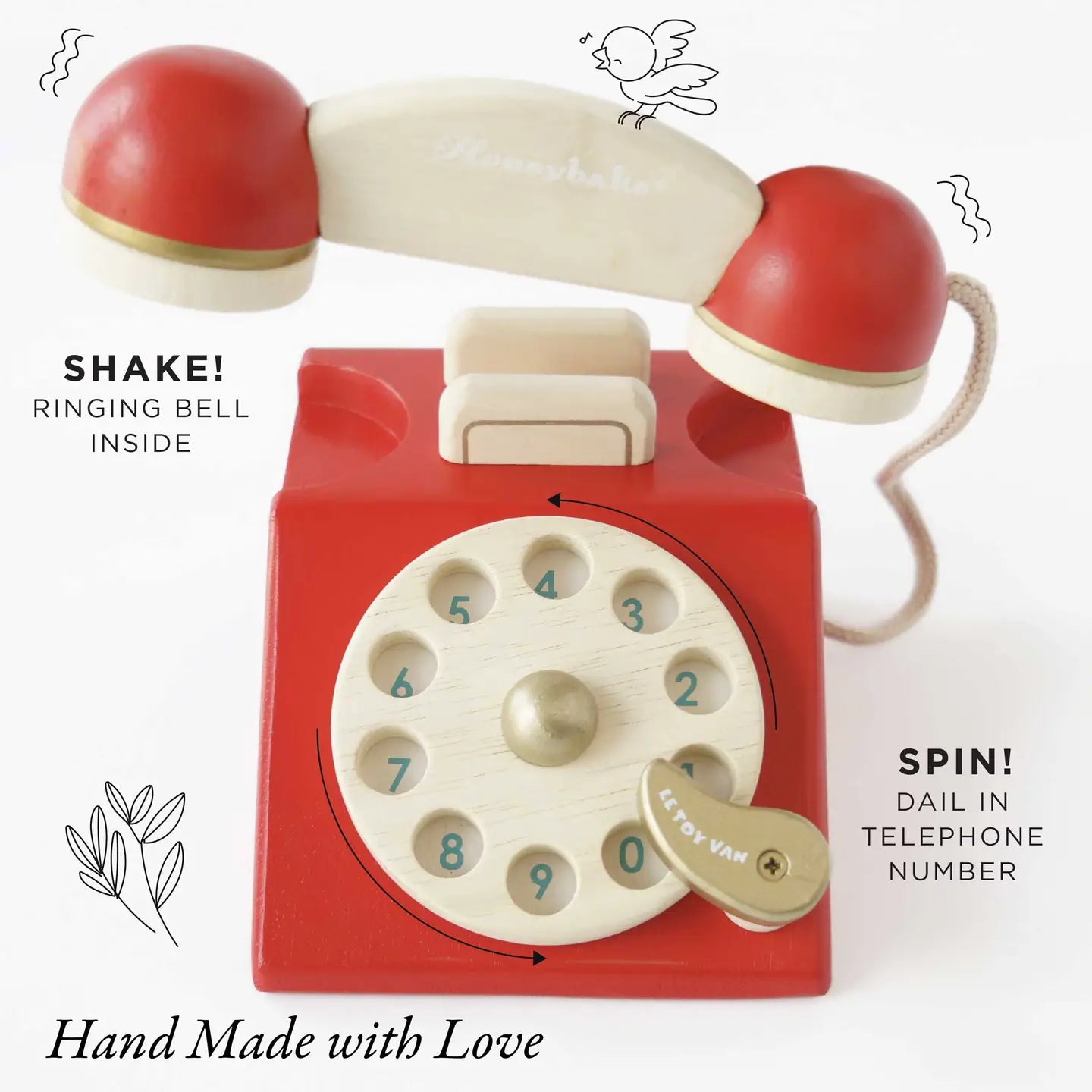 Painted in a striking red shade and finished with a flourish of gold accents for a touch of luxury, this toy features a ringing bell within the handset for realistic role play scenarios. The digits and spinning wheel are designed to encourage number recognition as well as aiding in numeracy and counting skills.