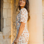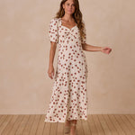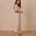 Our flattering Violet Dress is perfect for all your special outings. Designed with gorgeous above elbow sleeves, and gathering at the front bodice.