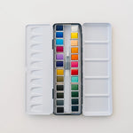 The set comes in a lightweight and durable metal tin, with a lid that features three partitions and doubles as a mixing palette for easy watercolor blending. Each set also includes a refillable water brush for effortless painting on the go.