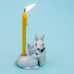 Introducing the “Love Bunnies” Cake Topper - a perfect pair of charming rabbits designed to celebrate love, devotion, and togetherness. This romantic duo is adorned with a single candleholder, symbolizing a shared flame and the unity of two hearts as one. Crafted with exquisite detail and endless whimsy, the Love Bunnies are an ideal addition to wedding cakes, engagement celebrations, or any event honoring the beauty of love.