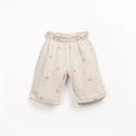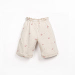 These trousers are made from jersey fabric with a blend of regenerative cotton and recycled cotton, in the color off white.