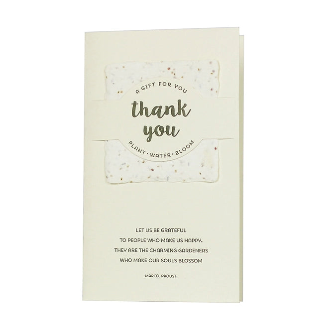 Plant… water... bloom. tucked into these creamy folded cards is a petite handmade paper square embedded with wildflower seeds.