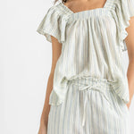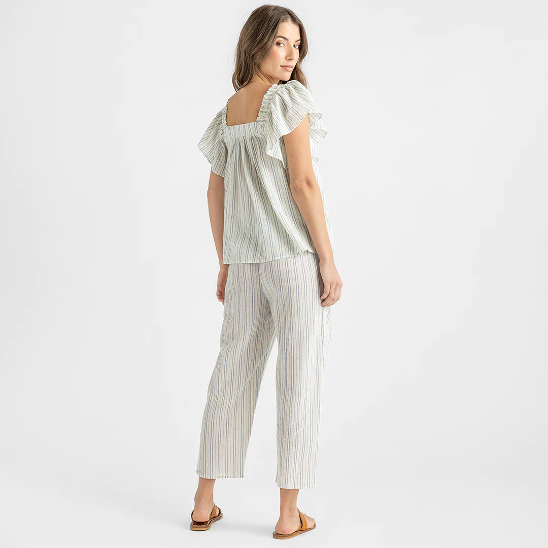 A short flutter sleeve and flattering square neckline give this new to the collection piece an easy to wear appeal. Pair with our comfy and stylish Women's Theodore Pant in Riviera Stripe for a complete look.