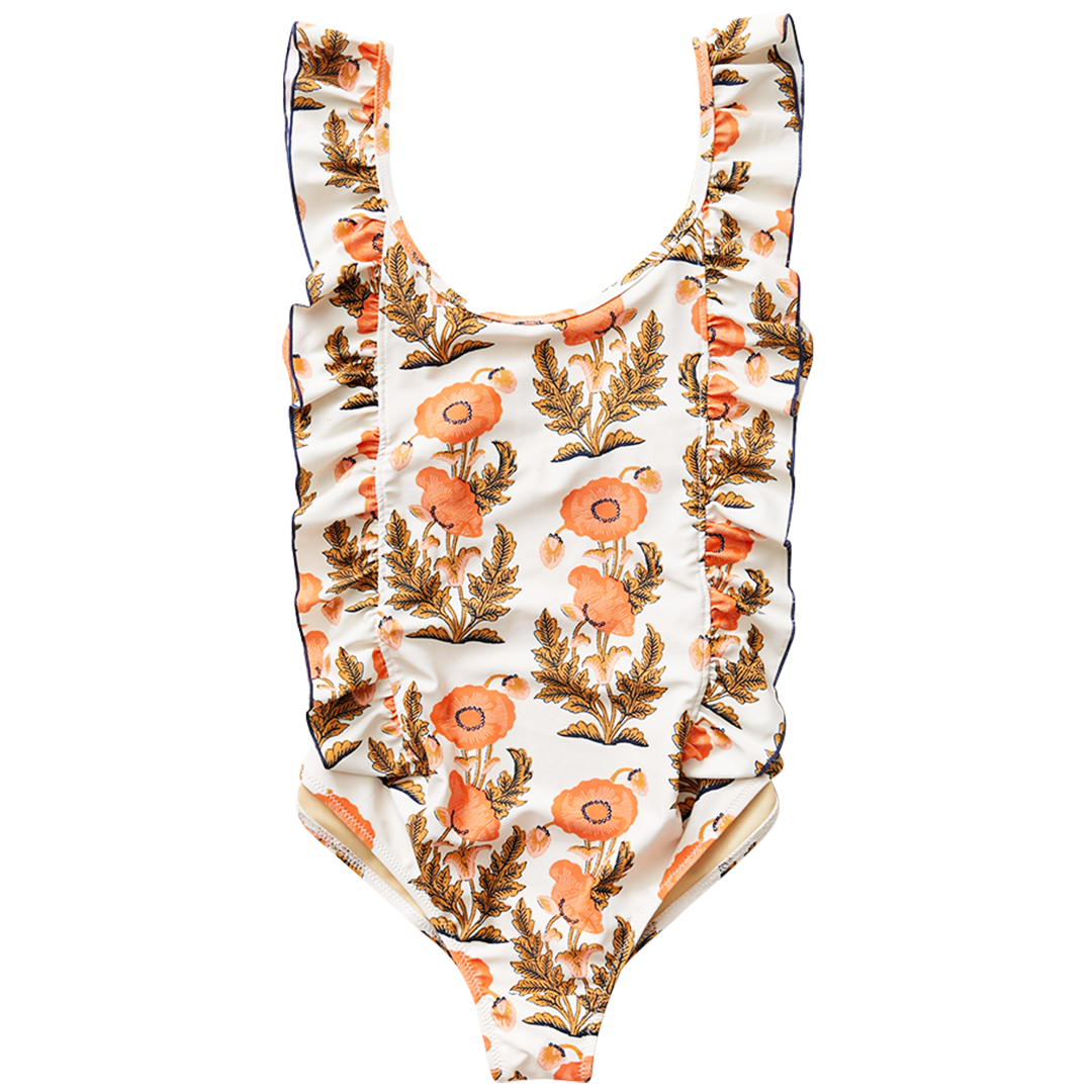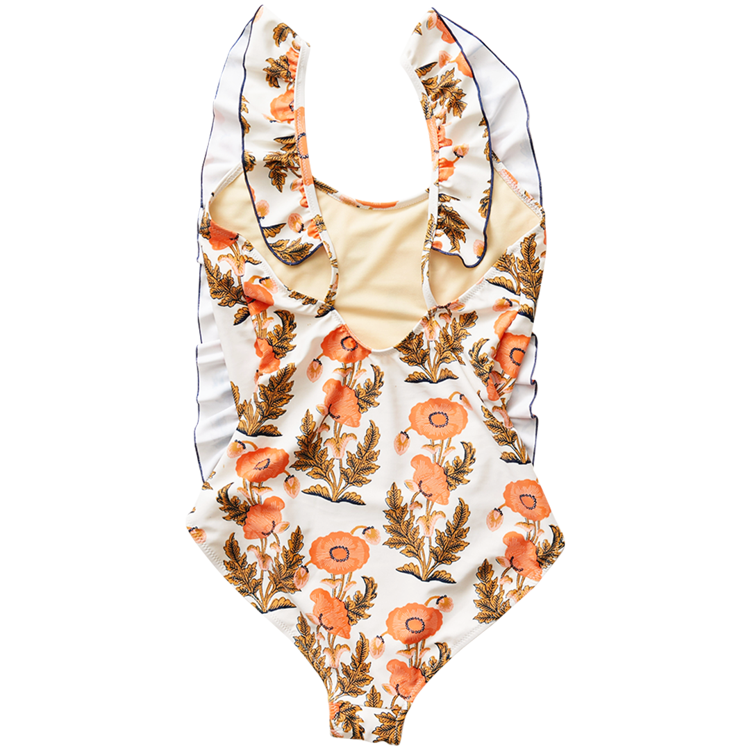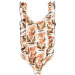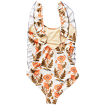 Beautifully in bloom: A vintage-inspired floral motif brightens the Women's Katniss One-Piece Swimsuit. Designed with a flattering scoop neckline, it's adorned with ruffles on front as a feminine finishing touch.