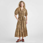This much loved style features a pintucked detail at chest, double tie closure v-neck, gathered puff sleeves and a form flattering removable belt that makes this easy to wear dress flattering for all women, including expectant mamas!