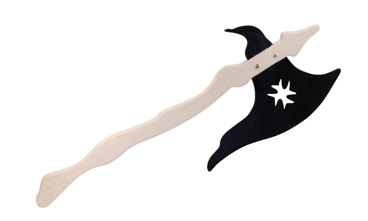 The most common weapon among the Vikings was the Axe, due to its lower price as compared to swords. This wooden battleaxe will complete any children's medieval costume.