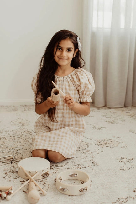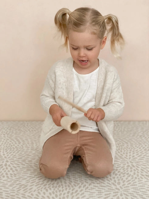 Make magic happen with our beautiful wooden tone block. Otherwise known as a wooden agogo or tone wood block, this instrument belongs to the percussion family. It is the perfect instrument for your little one to practice their hand eye coordination grasping onto the handle and then striking the instrument with a wooden stick producing a beautiful bright tone.