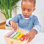 Mini maestros will enjoy creating beautiful music with this adorable wooden xylophone activity tile and attached mini mallet.